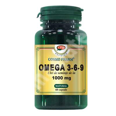 Premium Omega 3-6-9 1000 mg ulei semințe de in, 60 capsule.Uleiul de semințe de in, obținut prin presare la rece, reprezintă cea mai bună sursă naturală de acizi grași esențiali Omega 3-6-9.
